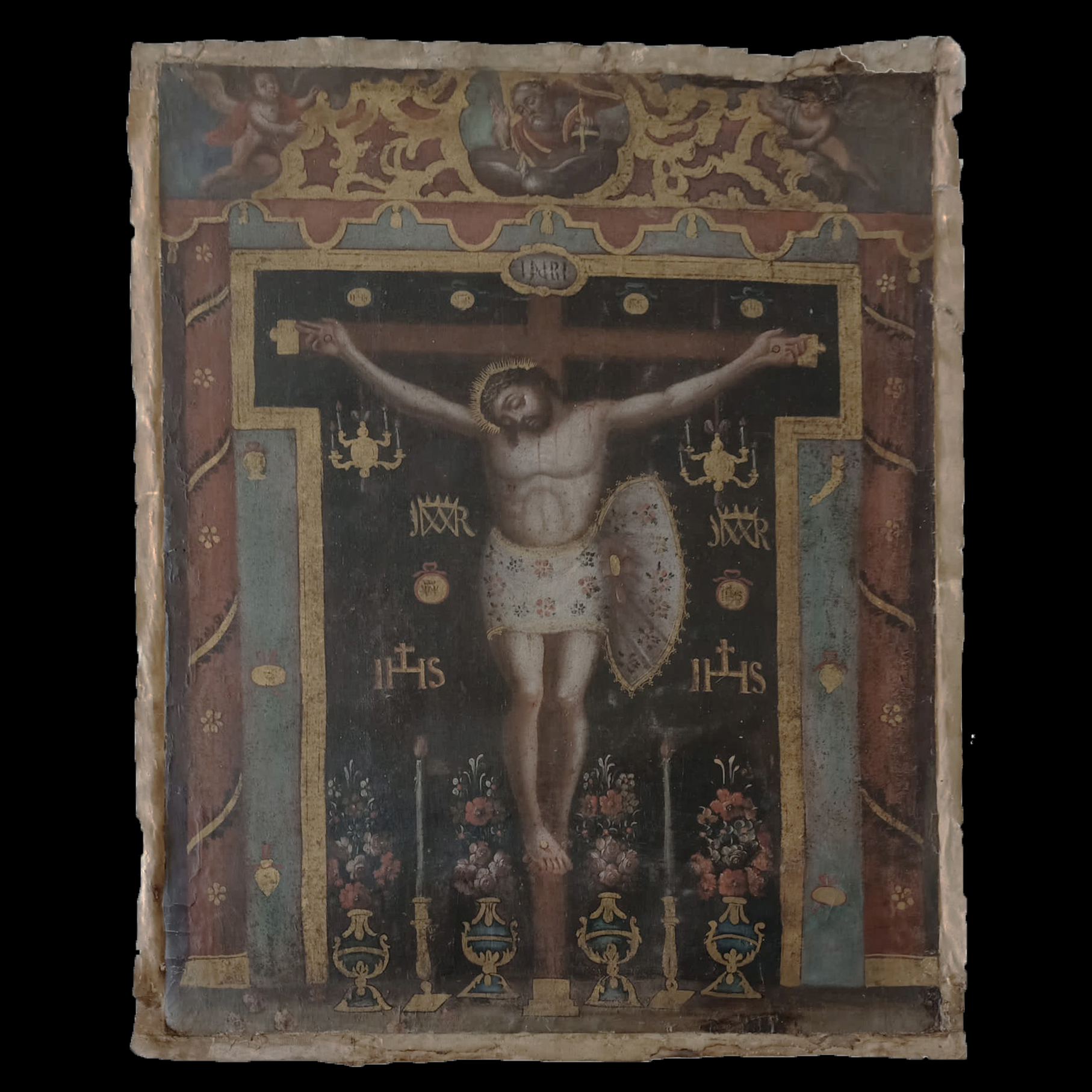 6.» Cristo sostenido por un Ángel». Anónimo italiano, s.XVIII. Óleo sobre lienzo ( 108 x 202 cm).