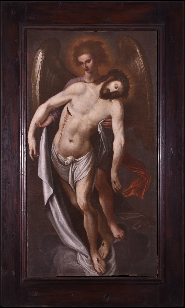- » Cristo sostenido por un Ángel». Anónimo italiano, s.XVIII. Óleo sobre lienzo ( 108 x 202 cm).