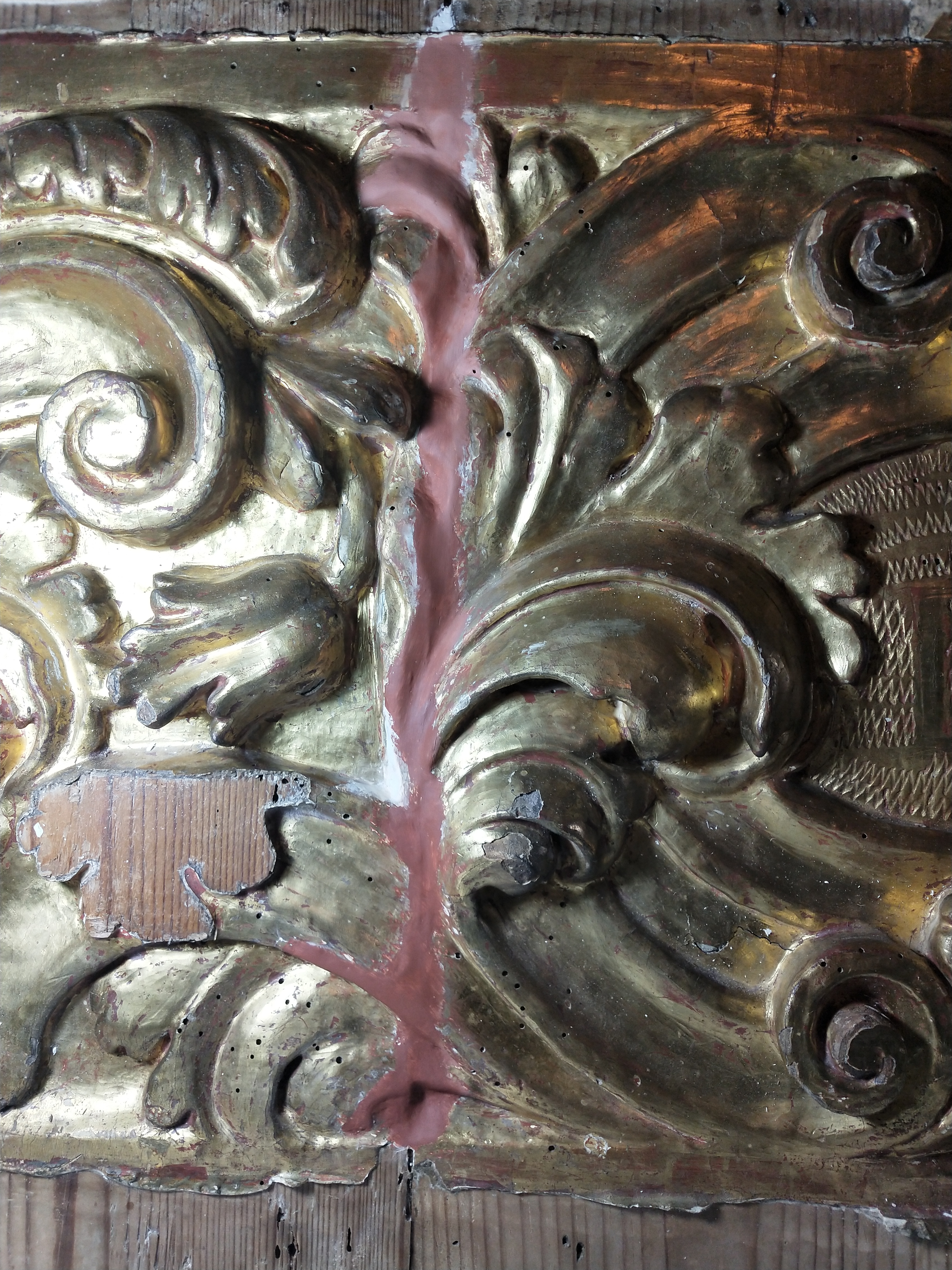 - Fragmento de retrablo barroco , s.XVIII. Madera tallada y dorada.